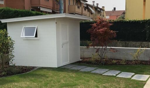 Casetta in Abete Austriaco di misura cm 250×250, una porta, una finestra e pavimento interno.