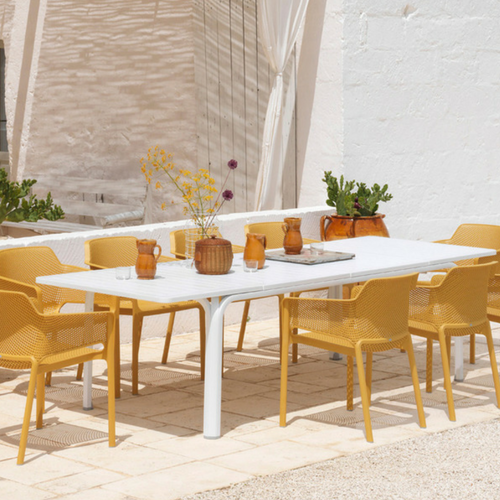Ad esempio, il tavolo allungabile, disponibile in diverse colorazioni, è perfetto per ambienti esterni più raffinati che puntano ad uno stile ricercato. Lo stesso discorso si può applicare anche nei tavoli che si allungano con un sistema a tavole e che presenta delle finiture di altissimo livello.