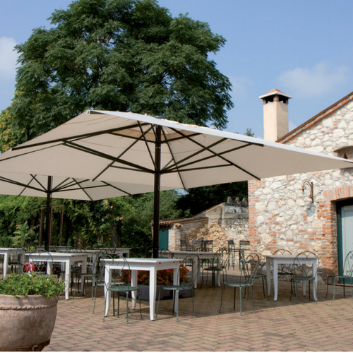 Questi ombrelloni possono essere di varie forme e dimensioni, ma anche di diversi materiali tra cui alluminio, acciaio o legno.