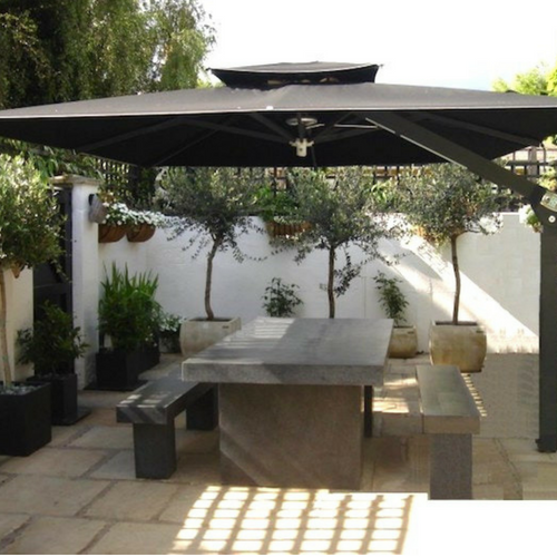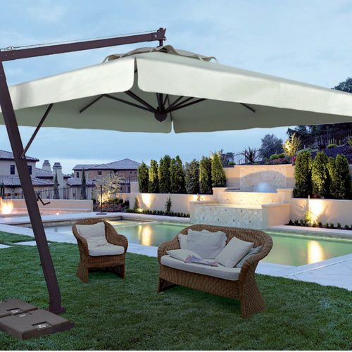 Questo tipo di ombrellone è particolarmente adatto per coprire grandi aree esterne, come piscine o terrazze, senza la presenza di ingombranti pali centrali; allo stesso tempo, può anche essere posizionato sopra un tavolo da pranzo o una zona relax all’aperto, permettendo un’ampia visuale e libertà di movimento sotto lo spazio d’ombra. Anche gli ombrelloni a palo laterale sono disponibili in diverse forme, dimensioni e materiali.